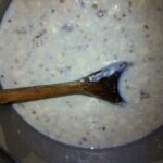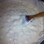 Em uma panela, misture (com calma e aos poucos) o creme de cebola, o requeijão, a maionese e o leite.