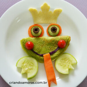 Criem juntos um pratinho ou lanchinho divertido com um tema simples: pode ser um animal, uma paisagem, uma flor, um trem, um carro, vai da imaginação da criança.